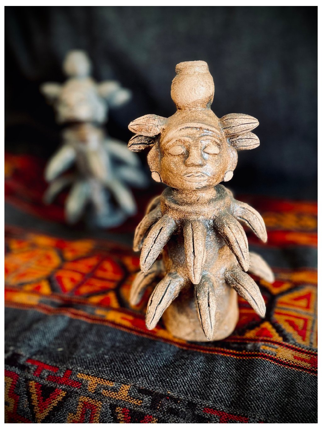 Ručně vyráběná keramická soška bohyně I'X Cacao v černo-kovovém NEBO přírodním hnědém provedení. Ideální na oltář pro kakaové ceremonie.
