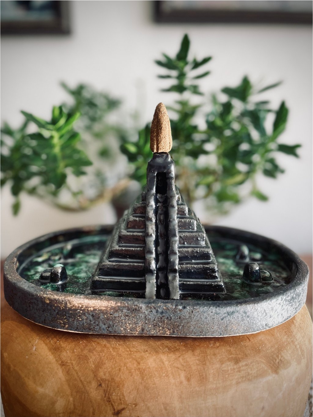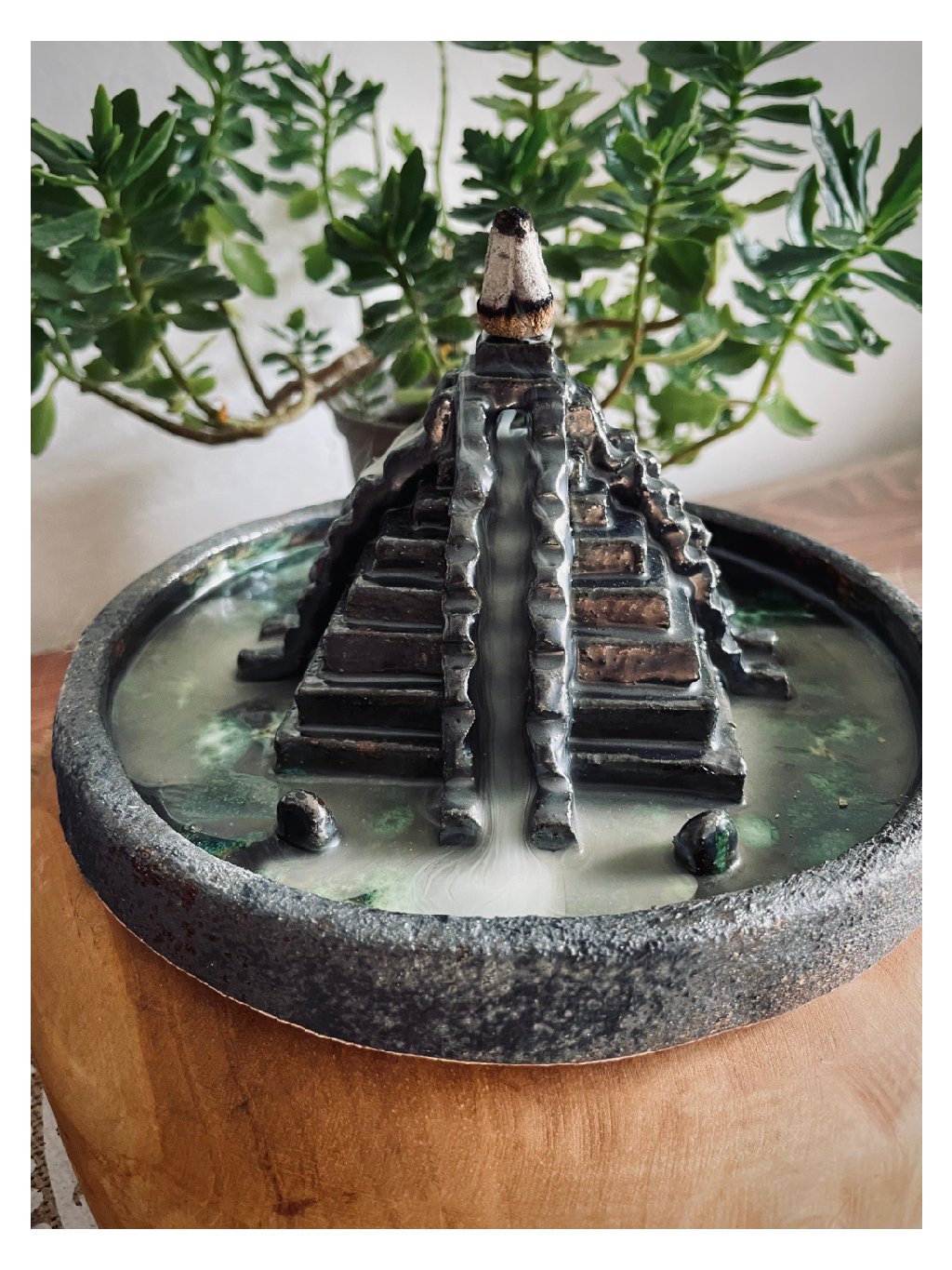 Stojan pro kužely na tekoucí dým napodobující mayskou pyramidu Chichén Itzá v Mexiku neboli pyramidu Kukulkána - okřídleného hada
